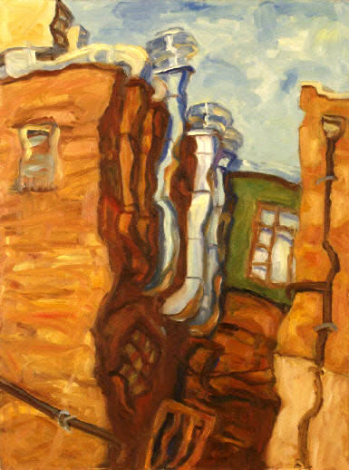 Brick and Metal Melody 24"x18", oil on panel