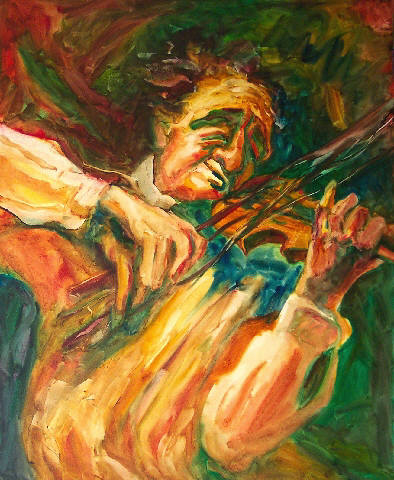 Fiddler 32"x26", oil on canvas (private collection) click here for a larger image