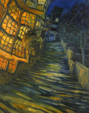 Night stairway 30"x24", oil on canvas (private collection)